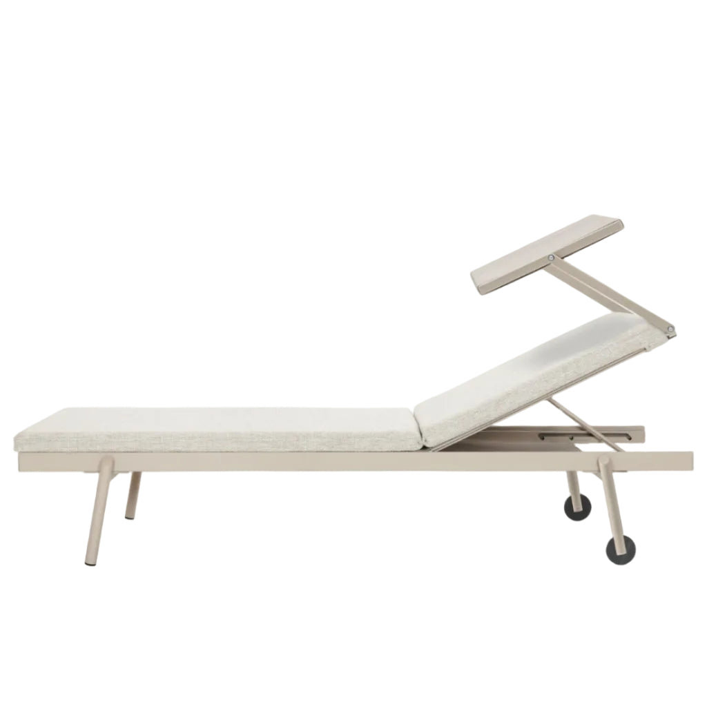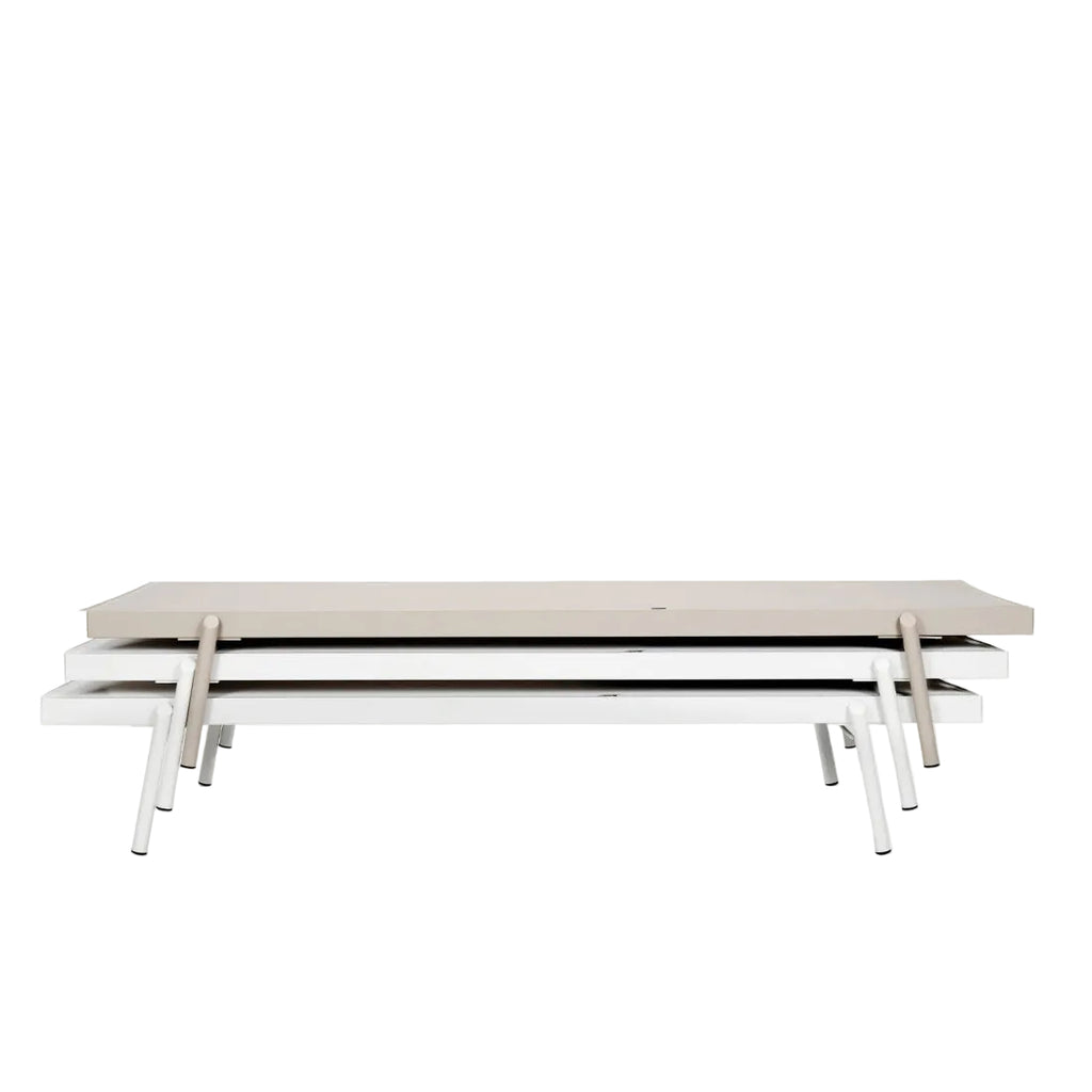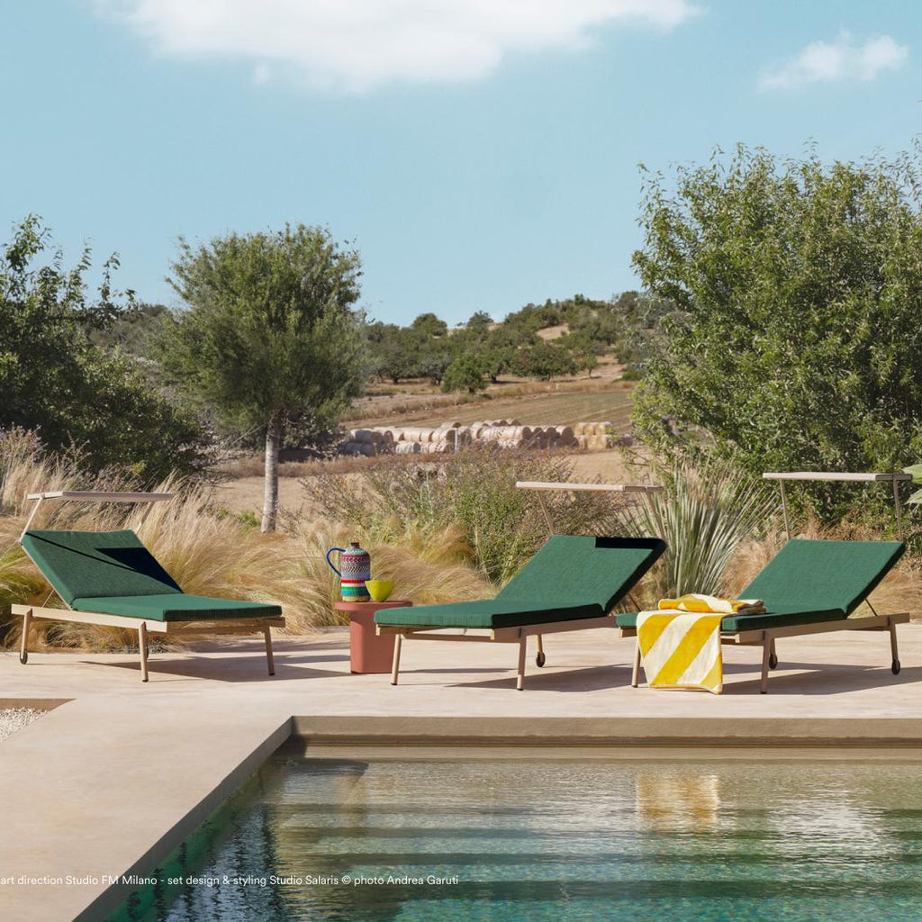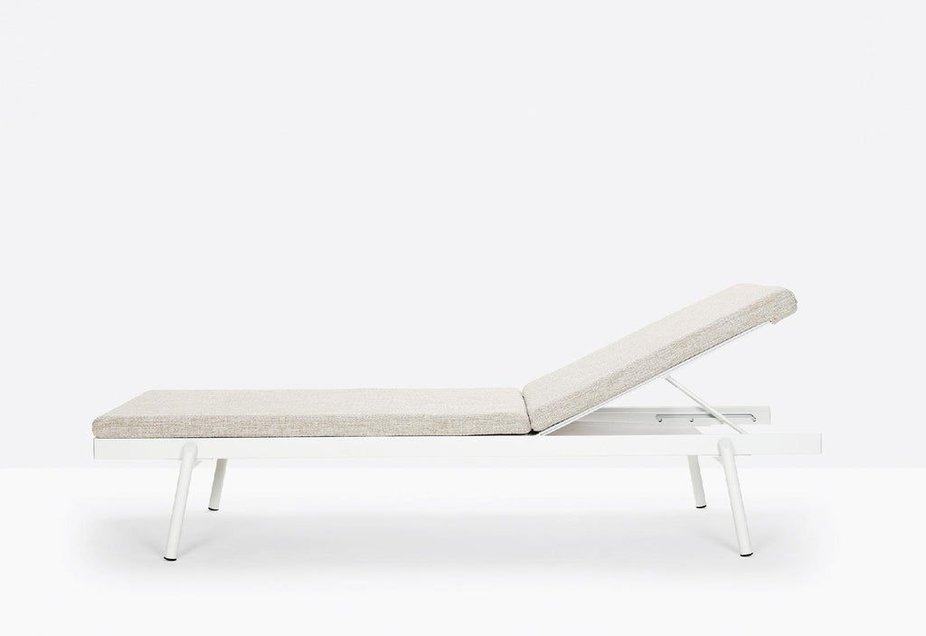 Rail is an outdoor sun lounger characterized by simple, modern lines and ideal for relaxing moments on the terrace, in the garden or by the pool. Its frame in powder coated aluminium has four angled legs in stainless steel featuring an oblique design.