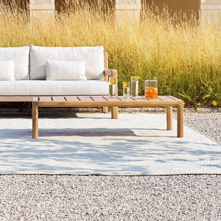 The coffee table from the Gianna collection, available in two sizes and made entirely of iroko wood, enhances the natural beauty of this material thanks to clean lines and proportions designed to ensure harmony and functionality.