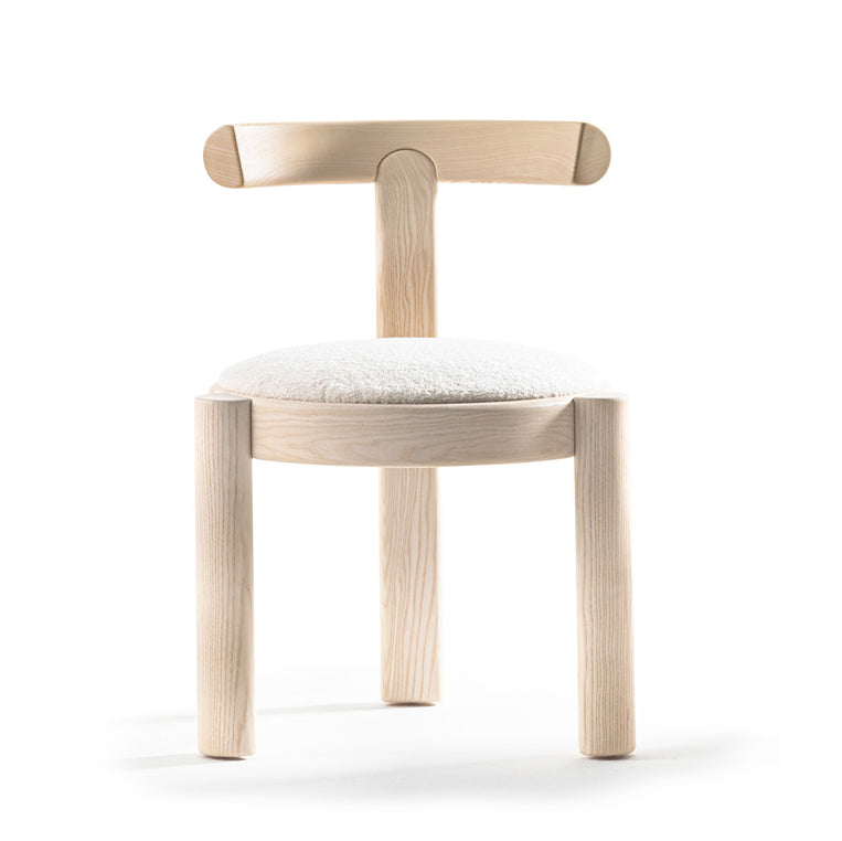 Tita is characterized by essential circular shapes and it’s available in different versions. Tita is a chair with a refined look able to get the attention of people thanks also to its enveloping shape. The characteristic of this product is that the padded seat is supported by three legs with beveled corners, one of which is higher than the others becoming the support for the curved backrest. Tita is available in ash wood or lacquered with one of the colors of the HESSENTIA finish collection.