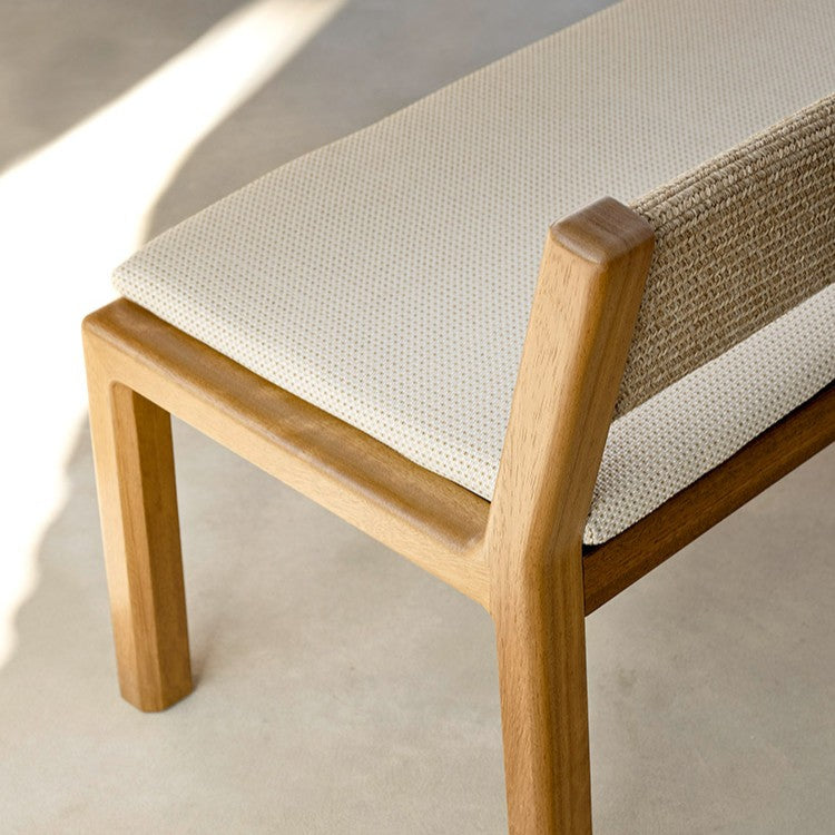Thanks to its solid iroko wood structure, chosen for its exceptional durability and tactile appeal, it blends naturally into any outdoor setting, from private gardens to the terraces of prestigious hospitality spaces.