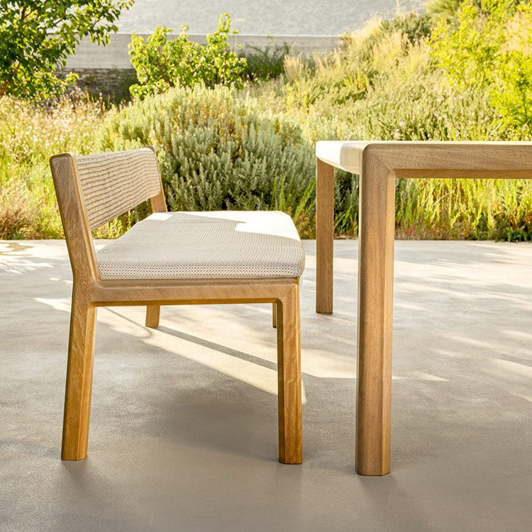 The bench from the Gianna collection, thanks to its essential and timeless shapes, is designed to encourage conviviality at any time of day or evening.
