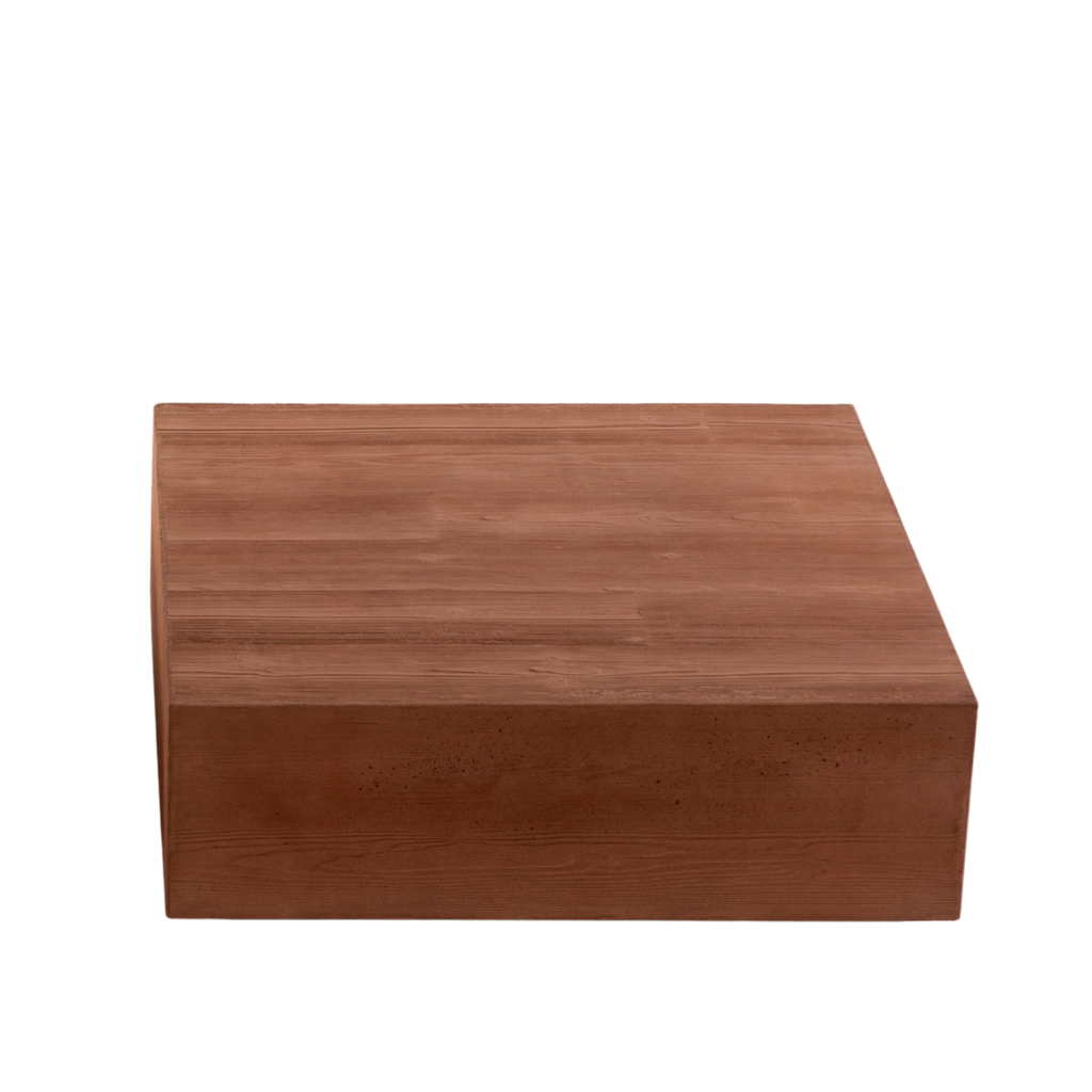 Materials: Low table in two sizes and heights, made of lightweight concrete with wooden texture.