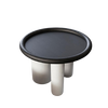 The Pluto tables are essentially sculptural shapes and bold details that call to mind cubism. Available in two sizes, the tables comprise a solid wood table top with bullnose edge and three massive concrete legs of different diameters, which lend the table vertical movement. Depending on the viewer’s perspective, its appearance seems to change.