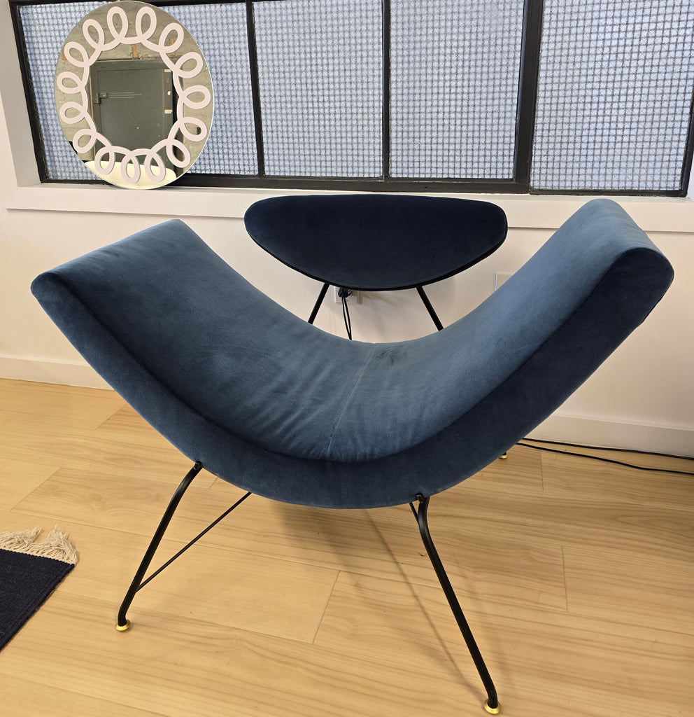 REVERSIVEL Lounge Chair Black Painted Base + Lusso Lamium 16 Blue Velvet fabric