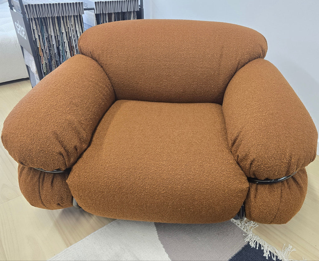 Dimensions: W: 43.3" x D: 37" x H: 26.37" Sh: 14.96" Materials: painted or chromed metal base with walnut or gray stained ash feet, upholstered seat and back Designer: Gianfranco Frattini 1970 (2015)