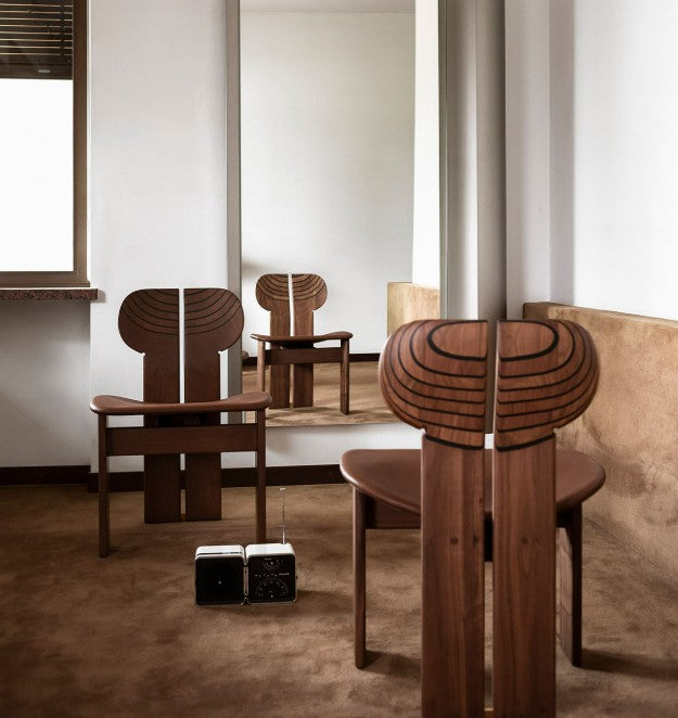 Africa is a chair that embodies a perfect synthesis of structure, form and functionality in a sculpture that enhances the constructive and communicative power of the material. A re-edition of the chair of the same name created by Afra and Tobia Scarpa in 1975, Africa is a timeless project that celebrates the ancient work of the cabinetmaker and the recovery of wood in design.