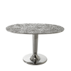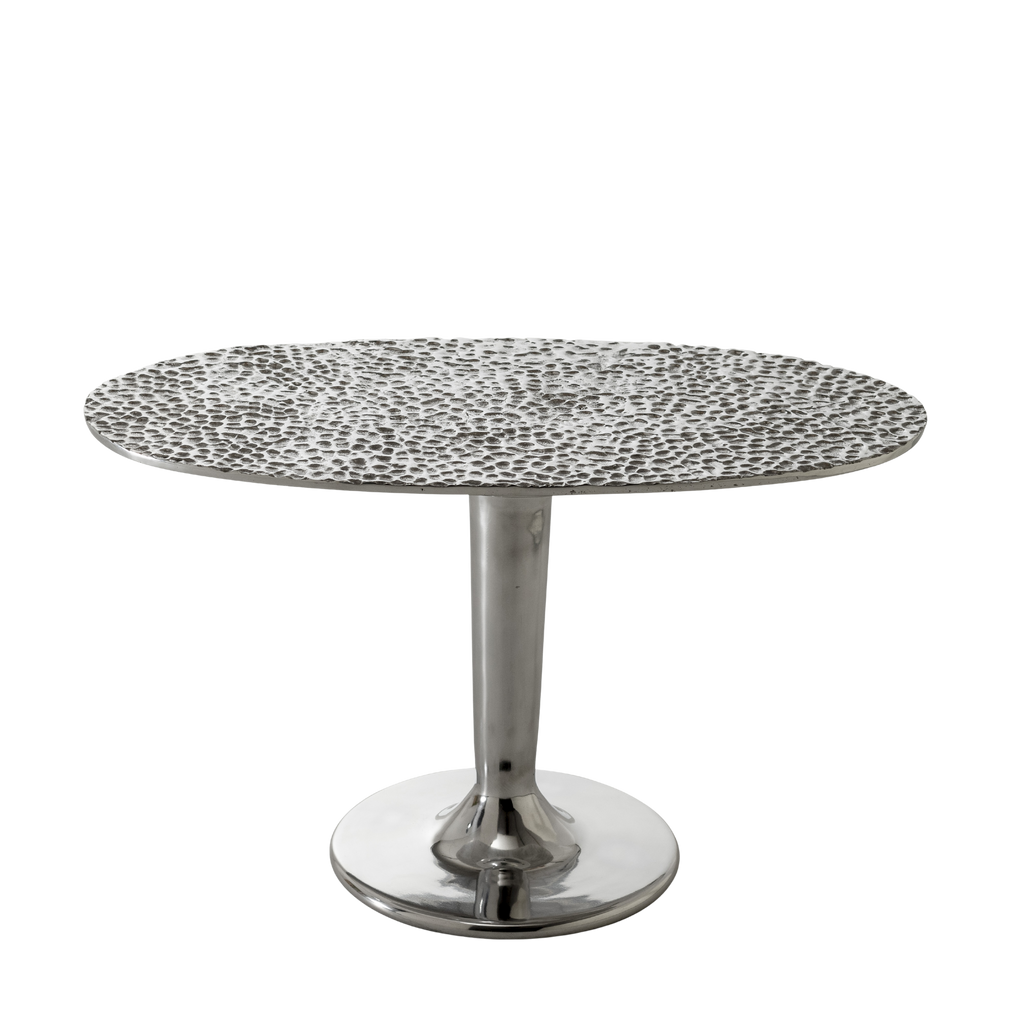 Contrasts of light and reflections characterise the Next 147/148 coffee table family. Made entirely of polished cast aluminium, in different sizes and heights, they are characterised by a single central base that joins an oval top embellished and decorated with a hammered effect. The gloss of the surface allows the light to create different effects every time.