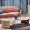 Dimensions: W: 46.26" D: 27.76" H: 11.8" Materials: Two oak veneered plywood curved sides with one solid laminate or marble top Suitable for indoor use only Designer: Claudio Dondoli e Marco Pocci
