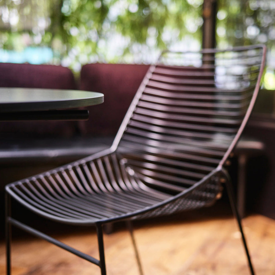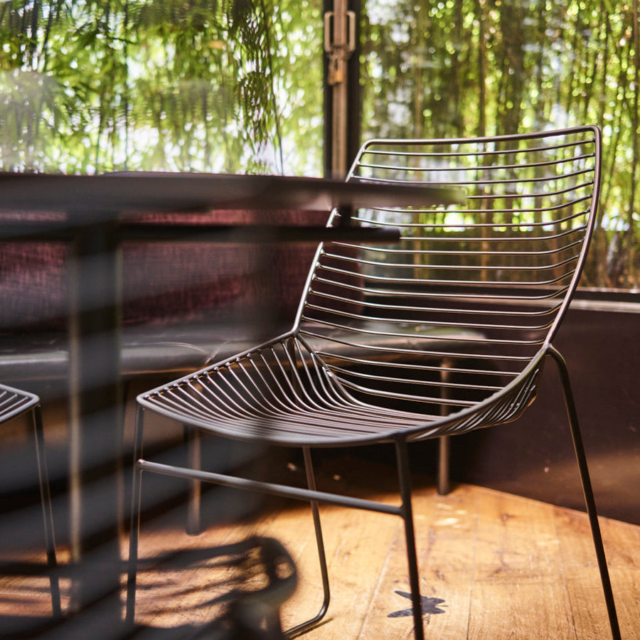The generous shell of the Zelo Chair, constructed using slim metal wires, offers comfort and a modernistic twist to contemporary scenery. With its perfect stackability and hardwearing cataphoresis, powder coated surface, this chair is the ideal companion for outdoor hospitality.